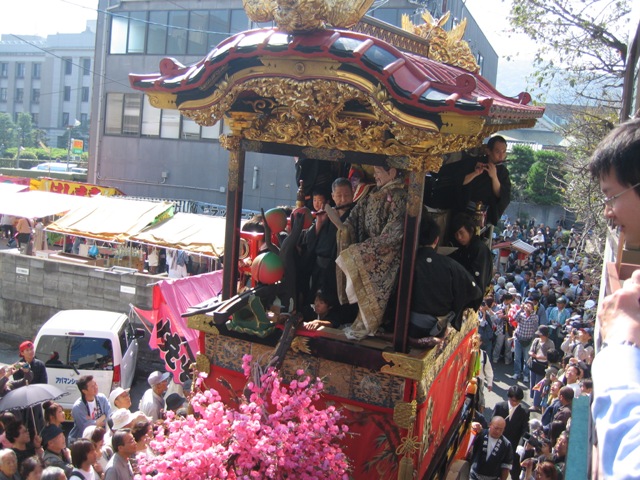 江戸時代の町人文化の粋を集めた動く美術館と言えます。巡行中「所望」の幣が掲げられた場所でからくりが操られ、巧妙な所作が人々をわかせます。